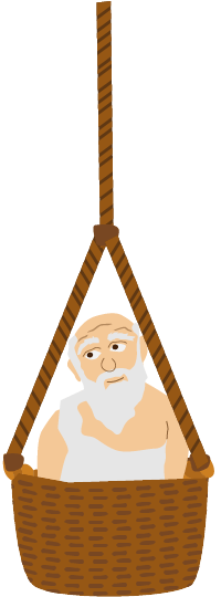 - Aristófanes muestra a un Sócrates viejo, impostor, sórdido y sucio. Sus estudiantes están preocupados en meditaciones banales, capaces de probar todo con las mejores razones o argumentos. Un tema adicional es la difícil relación entre un padre anticuado y tradicional y un hijo moderno. Aristófanes utiliza a Sócrates para ejemplificar a un sofista, aunque este no lo fue, sino un filósofo.